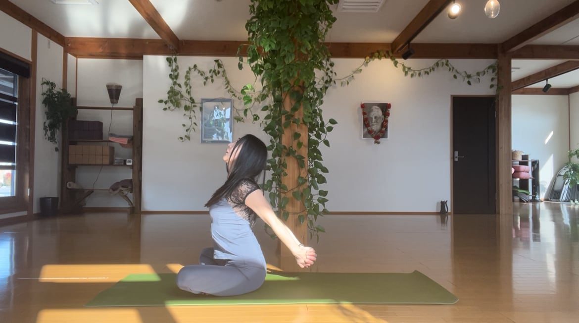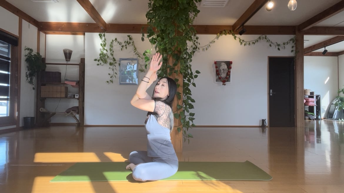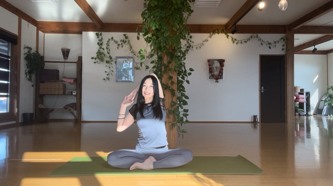 「肩ほぐしヨガ」はこわばった肩回りや、まるまった背中を動かして筋肉の緊張を血液の流れを促します♪
